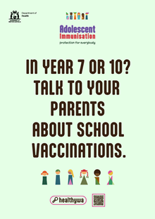 HealthyWA will post adolescent vaccination content throughout the duration of the campaign. You are encouraged to share posts to your channels.